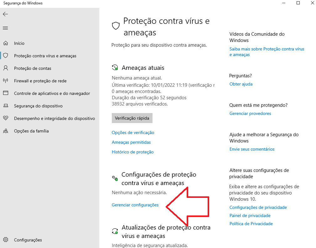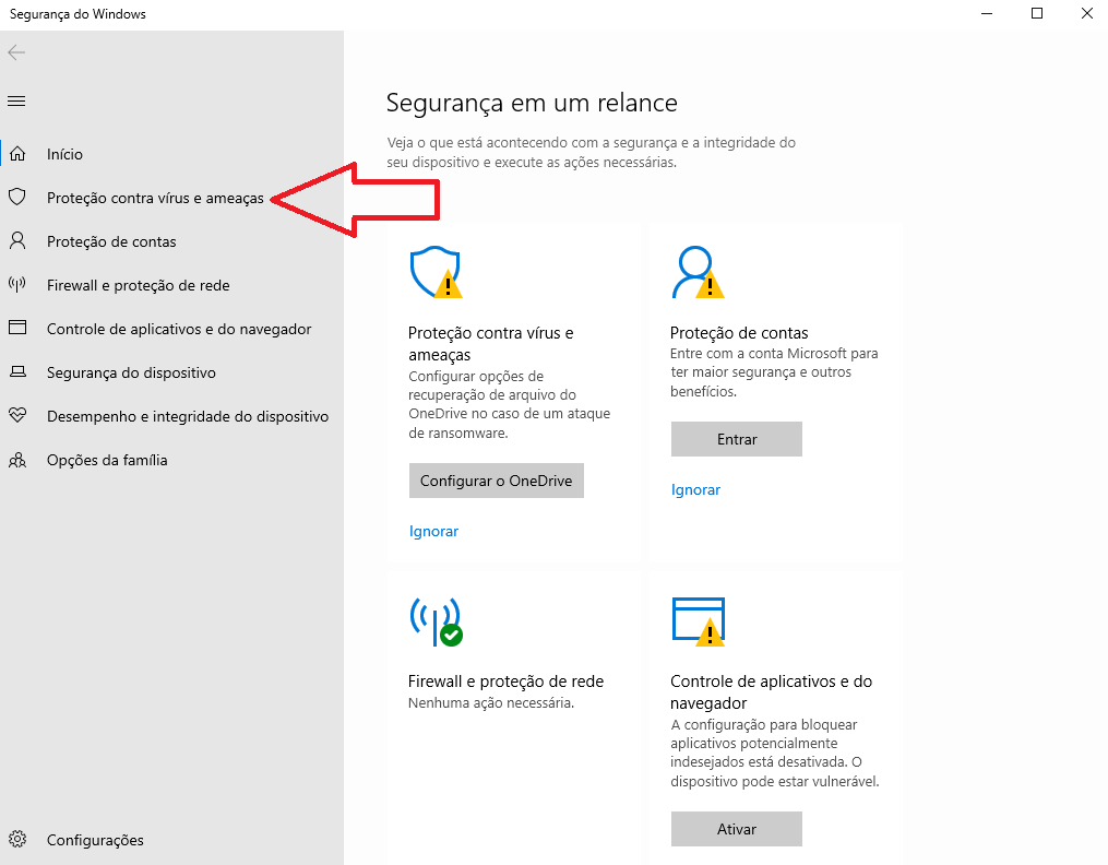 Clique em Proteção  contra Vírus  e ameaças: