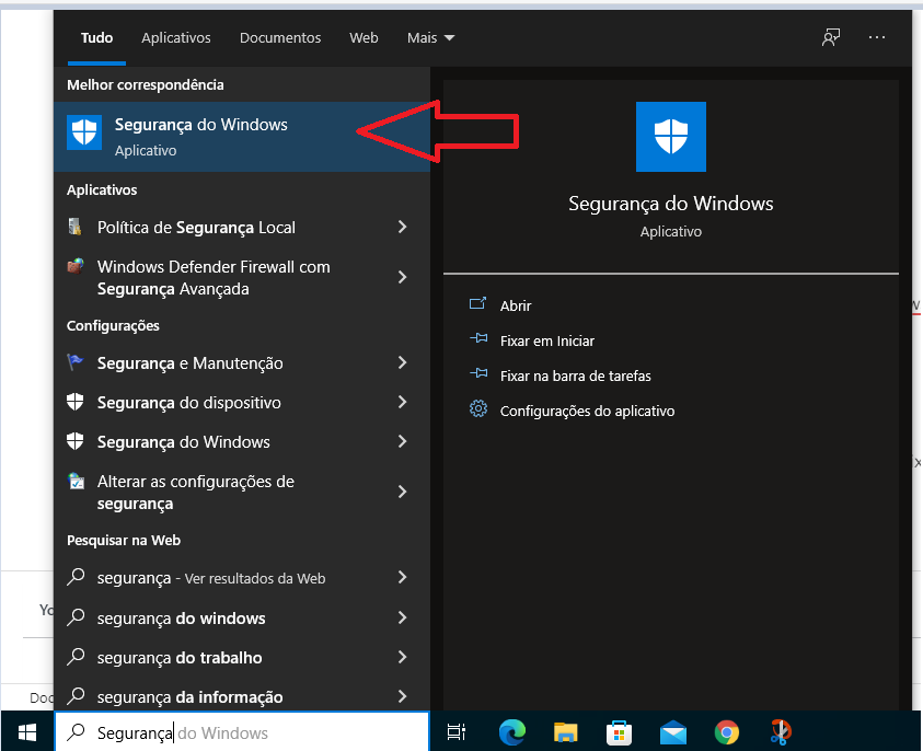 Digite segurança na barra de pesquisa do windows e entre em Segurança do Windows