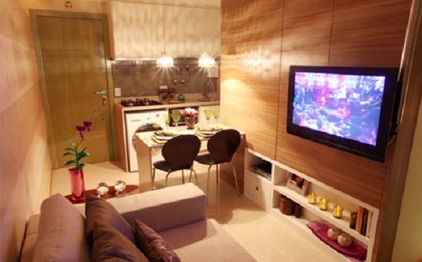 Procure escolher móveis que tenham uma ou mais finalidades, tal como o sofá-cama. Em relação aos que possuem gavetas, opte por comprar os que possuem a abertura de correr, pois irá economizar espaço no ambiente.